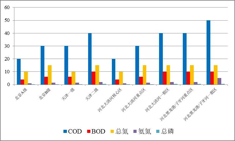 圖1  京津冀地區水污染物排放標準(直接排放)